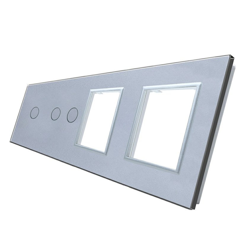 A491288S1 WELAIK čtyřnásobný panel vypínače skleněný 1+2+zás+zás - šedý Panel pro jednovypínač + jednovypínač + zásuvku + zásuvku, rozměr panelu 293 mm (80+71+71+71)