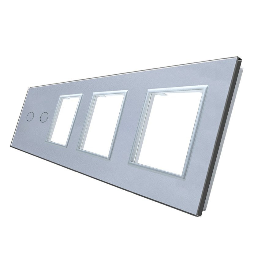 A492888S1 WELAIK čtyřnásobný panel vypínače skleněný 2+zás+zás+zás - šedý Panel pro dvojvypínač + zásuvku + zásuvku + zásuvku, rozměr panelu 293 mm (80+71+71+71)